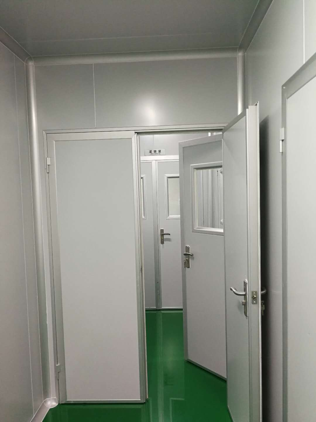 恒温恒湿车间建造结构室体底座采用8槽钢焊接成网式框架,以便于在水平条件下能承受室体及人员试件的重量,而不产生室体底面凹凸不平及开裂等。承受力200kg/每平方米室体(试验室主体(壳体))分为六个室体面及一扇双开式室体大门,尺寸为1800×2000 mm,室体材料为内胆优质不锈钢板(防止长时间在湿度运行状态下内壁生锈),外胆为优质彩钢板(国内名牌),保温介质为聚氨脂硬质发泡隔热,质轻耐抗击,隔热性能佳,大门材料同样为彩钢板制成,大门拉手为内外开启式,恒温恒湿车间以便于试验人员从封闭的室内自由开启大门。